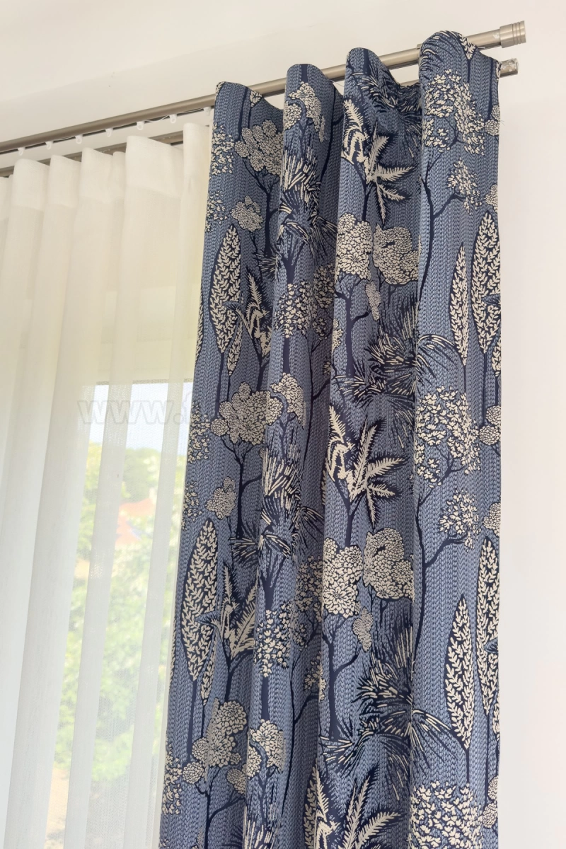A kék színű sötétítő anyagokhoz általában a kék, rózsaszín, sárga, ekrü, bézs és fehér színű fényáteresztő függönyök, illenek legjobban.