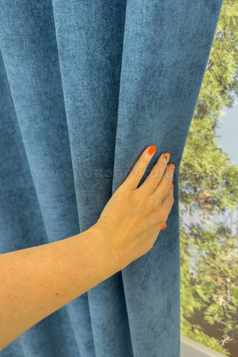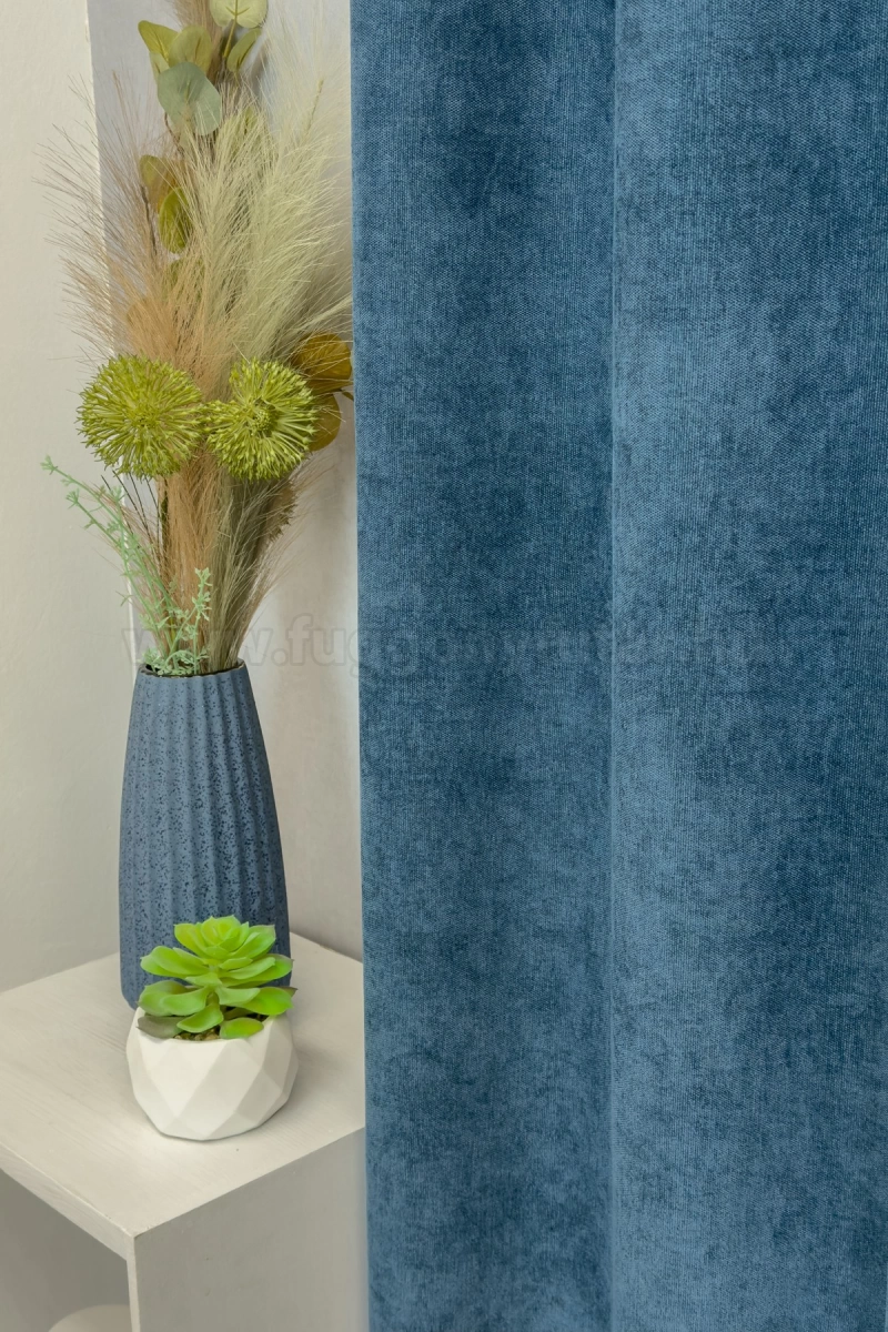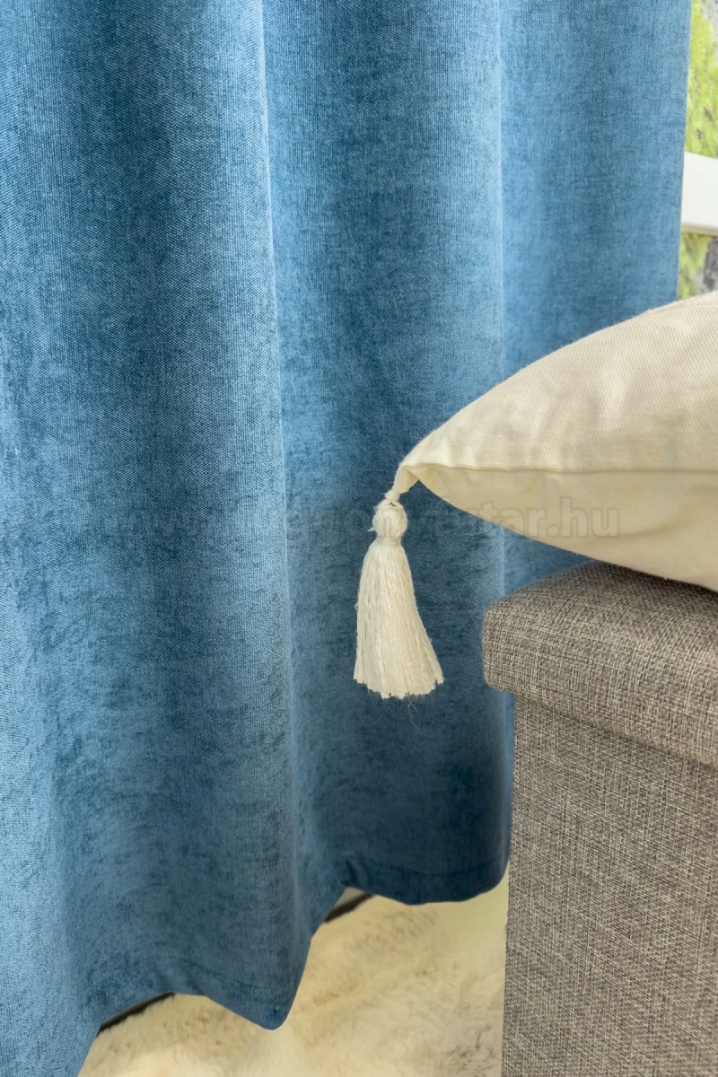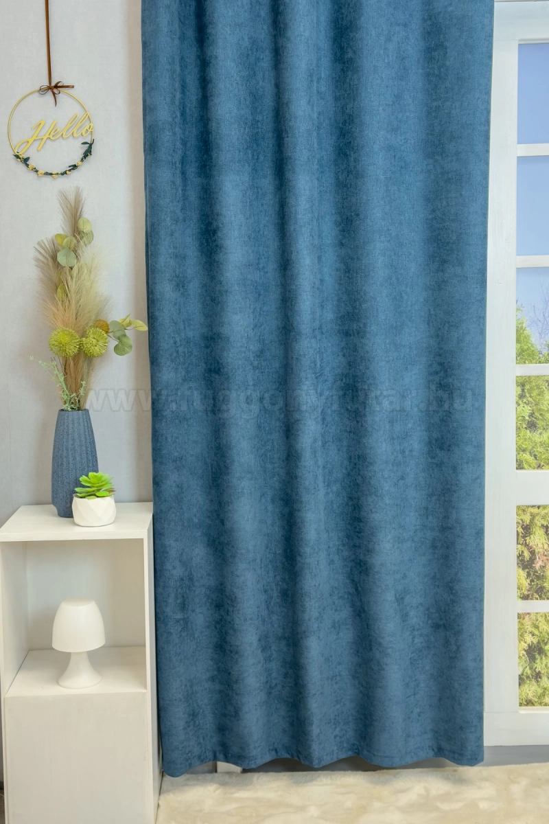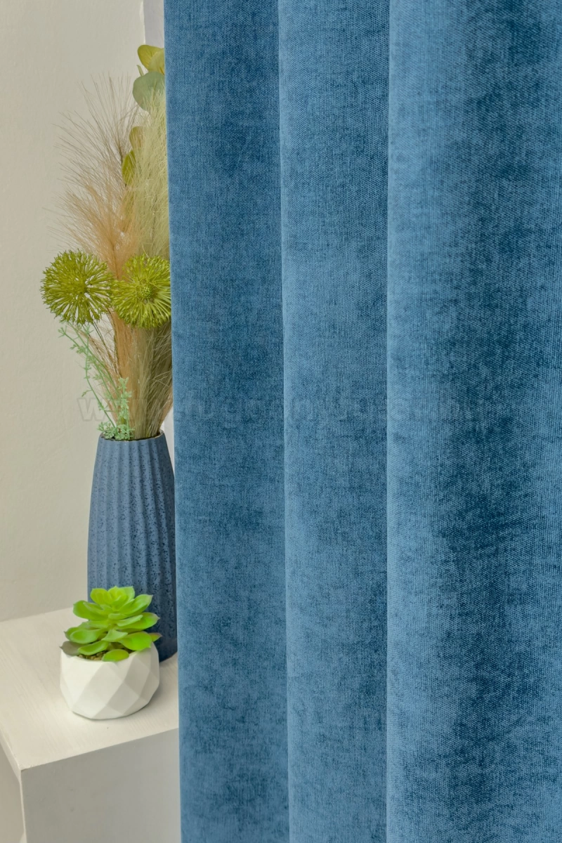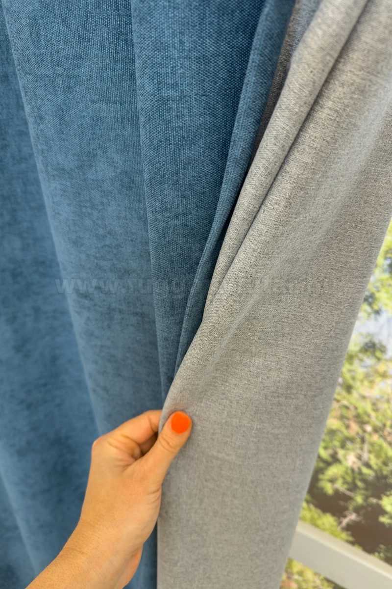 A kék színű sötétítő anyagokhoz általában a kék, rózsaszín, sárga, ekrü, bézs és fehér színű fényáteresztő függönyök, illenek legjobban. A függöny hátoldala egyszínű szürke