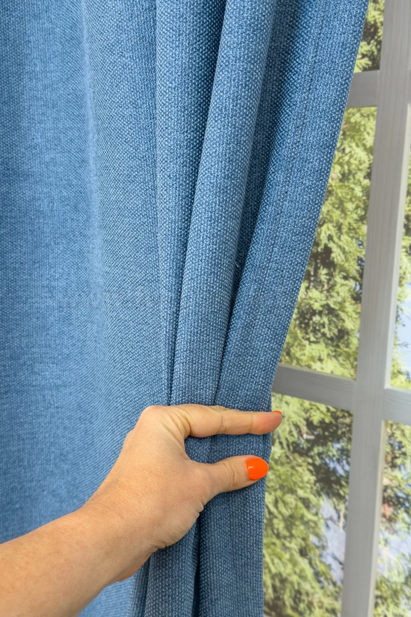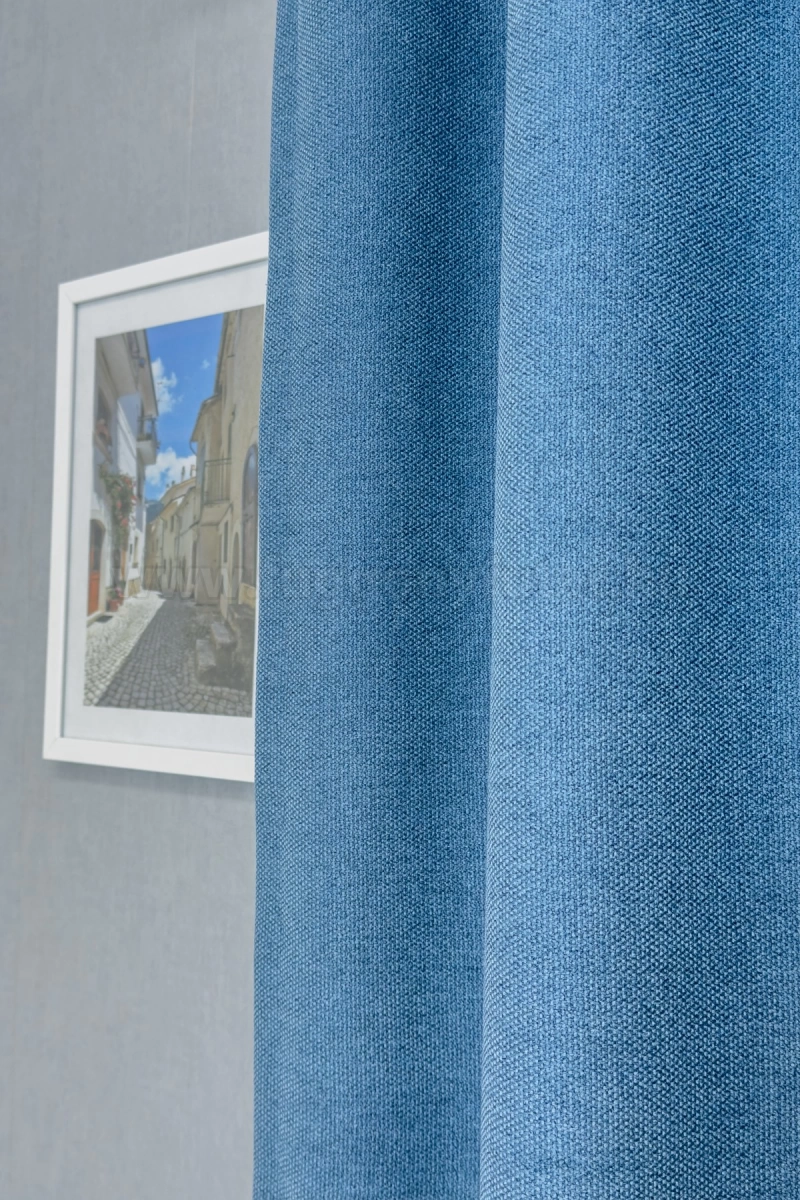 A kék színű sötétítő anyagokhoz általában a kék, rózsaszín, sárga, ekrü, bézs és fehér színű fényáteresztő függönyök, illenek legjobban.