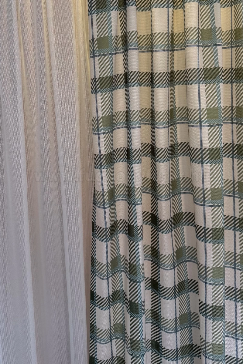 A zöld színű sötétítő anyagokhoz általában a tónusában hasonló zöld, rózsaszín, bézs, ekrü és fehér színű fényáteresztő függönyök illenek legjobban.