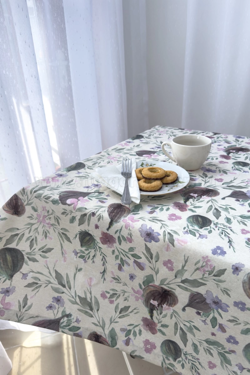 Szicilia - Homokszínű alapon virágmintás dekor és abrosz anyag
