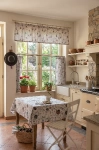 Ez a függöny több lakberendezési irányzathoz is tökéletesen illeszkedik – legyen szó a mediterrán könnyedségről, a skandináv egyszerűségről, a vintage nosztalgiáról vagy a klasszikus eleganciáról. Anyaga diszkréten simul bele a térbe, miközben kiemeli a helyiség hangulatát. Ideális választás, ha olyan textilt keresünk, amely rugalmasan alkalmazkodik a meglévő bútorokhoz és kiegészítőkhöz.
