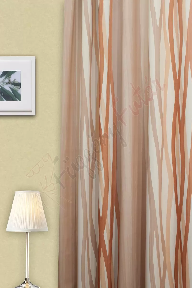 Bézs alapon fehér és tégla színű nyomott hullámmintás blackout függöny.