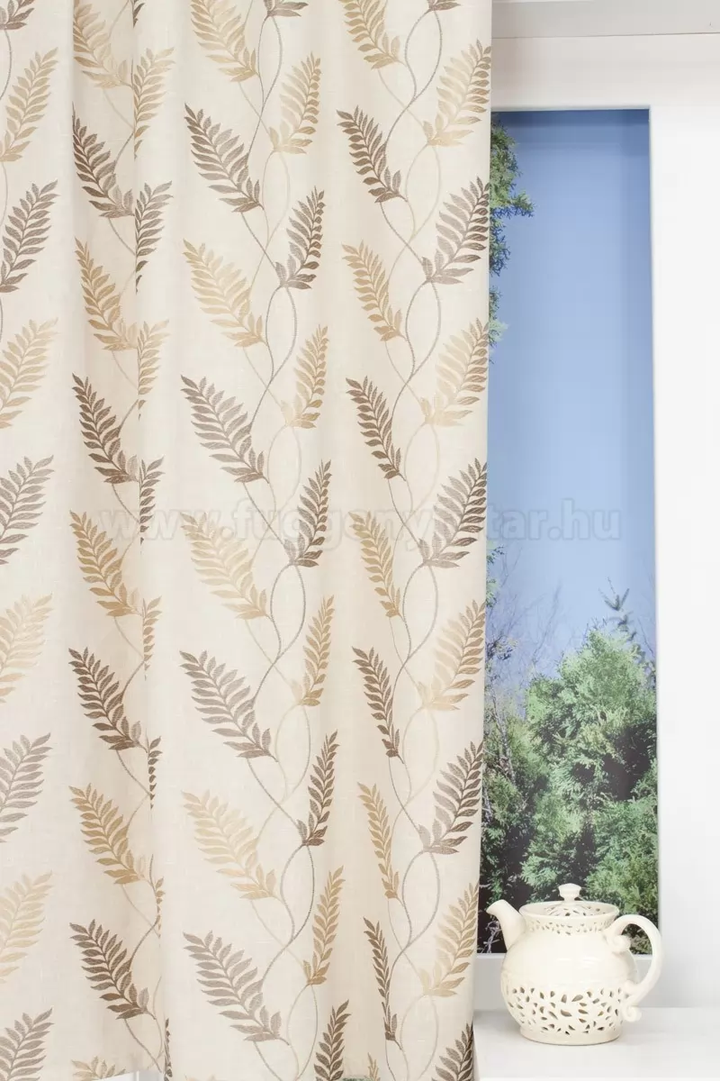 Az anyagról: A természetes anyagokat , rusztikus stílust kedvelőknek ajánljuk ezta páfrány levelekkel, indákkal díszített könnyű vászon függönyt.Ekrü alapon arany , a barnás bézs a levelek 16 cmesek, az indák távolsága 26 cm. Egyéb dekorációs célokra is kiválóan alkalmas.