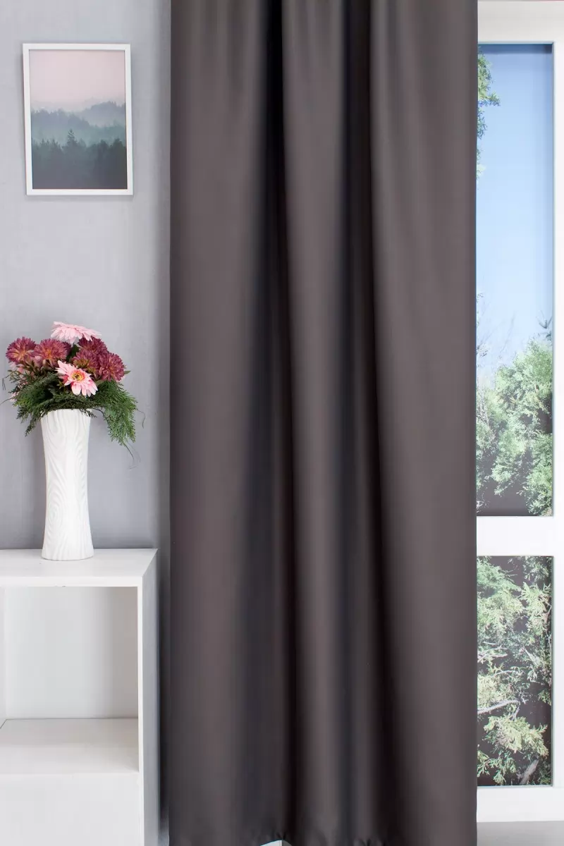 Univerzális, minden stílushoz jól illeszthető ez az egyszínű, egyenletes szövésű dimout függöny. Közép tónusú, antracit szürke színe minden más színnel jól társítható, elegáns hatású. Jól kezelhető anyag, ágytakaró, díszpárna is készíthető belőle.