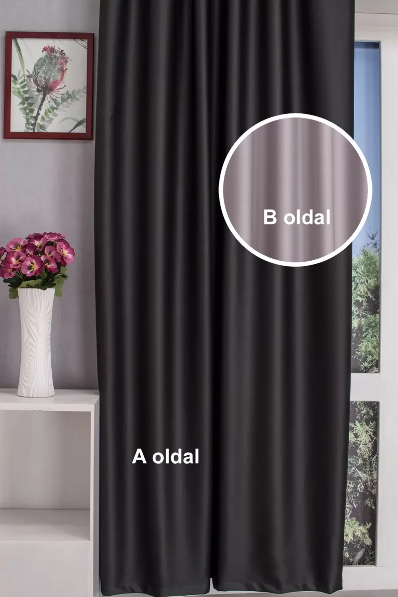 Különlegesen elegáns ez a két oldalú dimout sötétítő függöny. A minimál, Bauhaus, japán stílusú lakásokban jól használható. Egyik oldala éjfekete, másik oldala világos szürke, mely egymással variálható. Jól kezelhető anyag.Kímélő mosás után helyére akasztva szárítható, gőzölős vasalóval simítható.