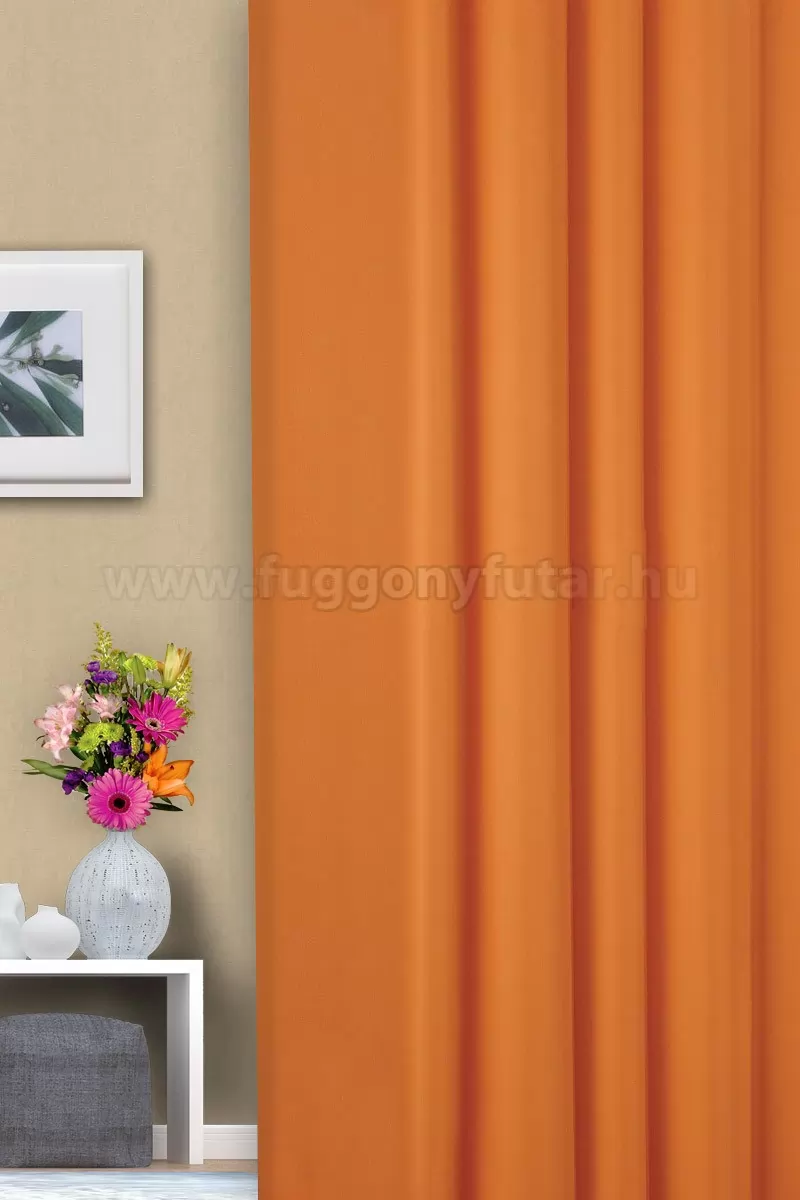 Narancs színű, dimout szövésű dekoranyag, amely színvilága harmonikus és kellemes hangulatot teremt az otthonában. Jó minőségű, sűrűn szövött textil, melyen keresztül jóval kevésbé jut át a fény, ezért kiválóan alkalmazható sötétítő függönynek.