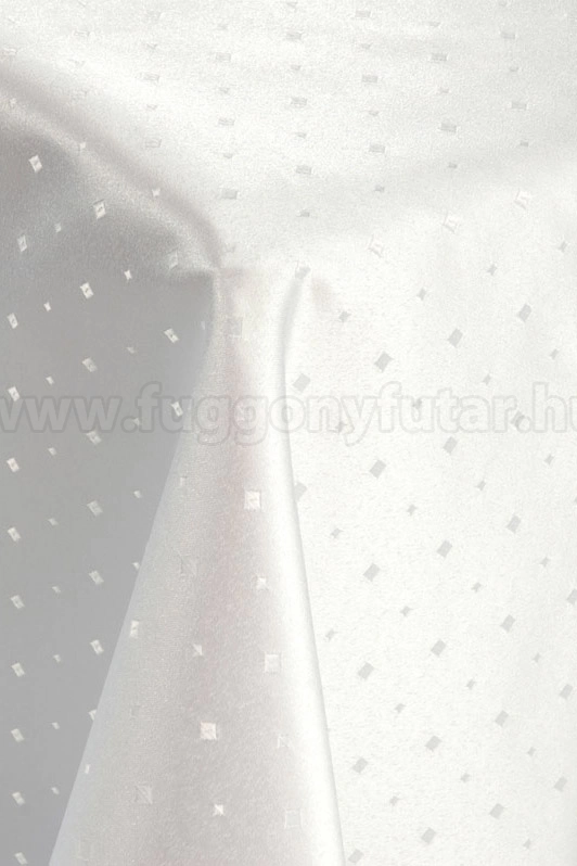 Fehér alapon ugyanolyan színű apró rombusz mintás szatén sötétítő függöny.