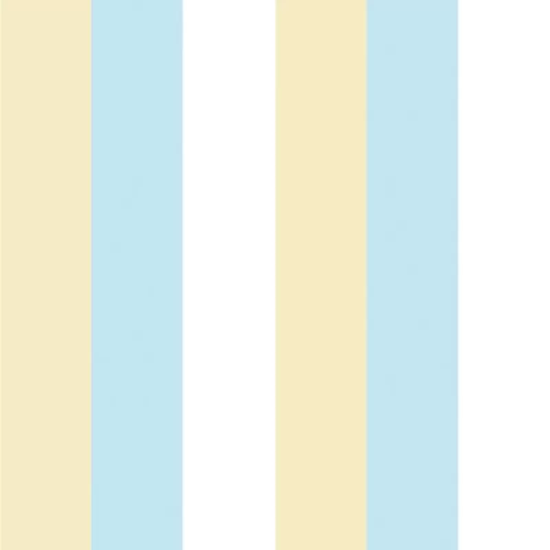 Kék-fehér-sárga csíkos papírtapéta gyerekszobába. Enyhén lemosható.