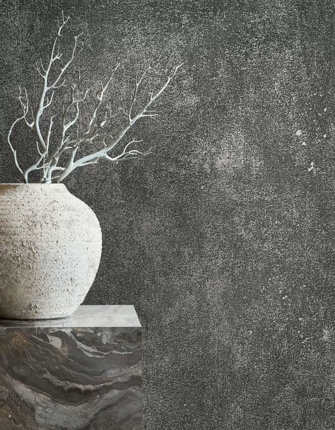 Antracit, beton hatású koptatott, fényes moshatóvlies tapéta, Marburg, City Glow, 34271
