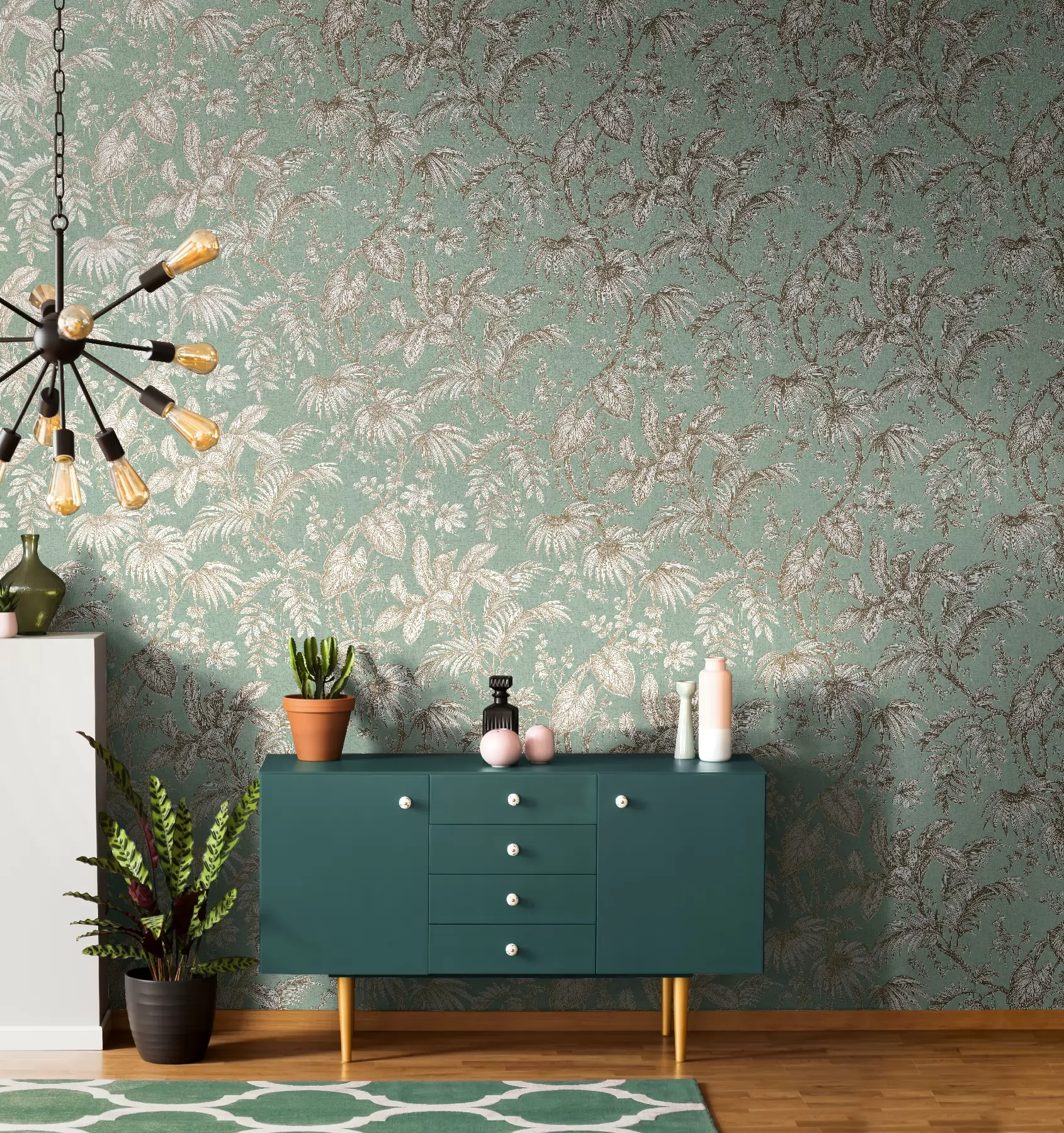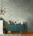 Türkiz alapon barna növénymintás vlies tapéta, Marburg Jackie 6818-50
