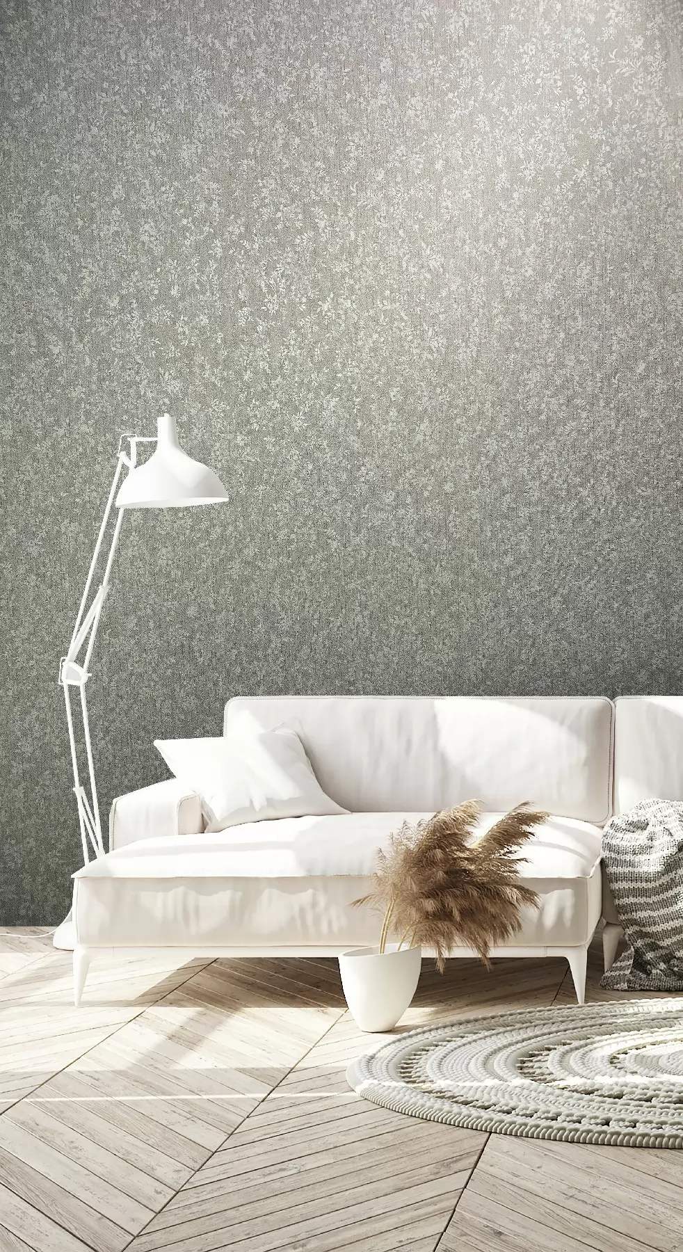 Szürke alapon fehér növényi mintás vlies tapéta, Marburg Jackie 6822-40