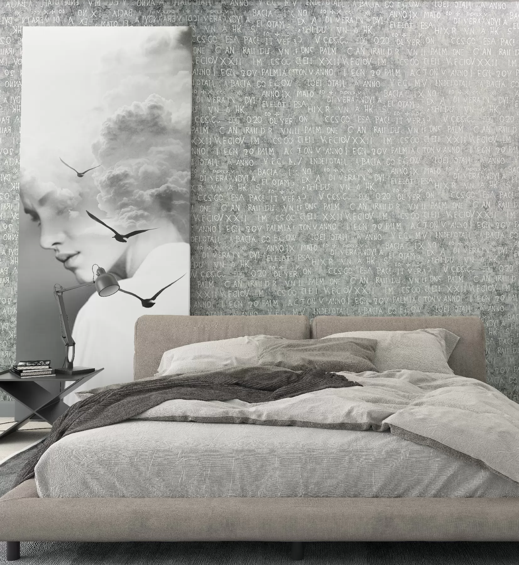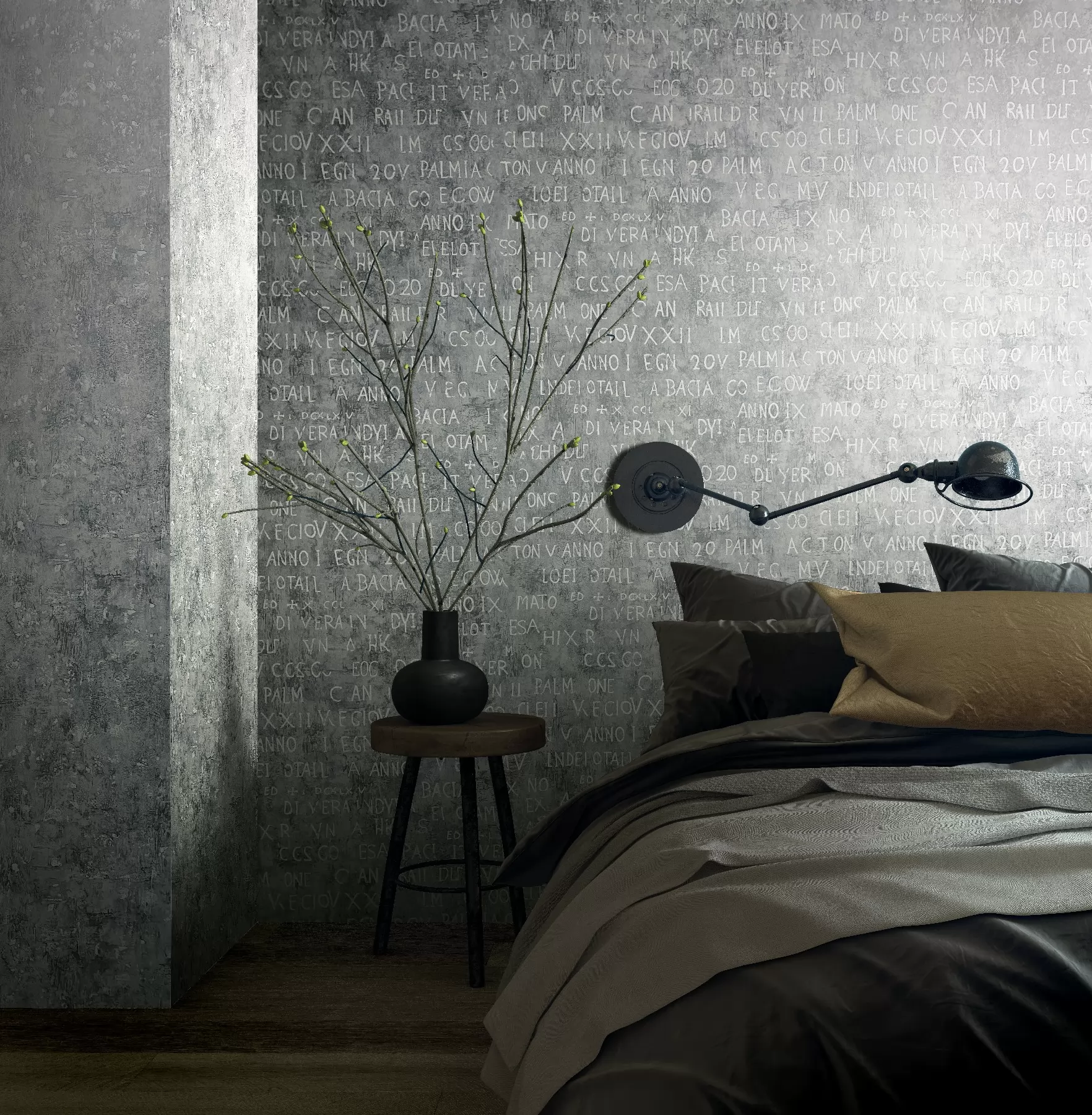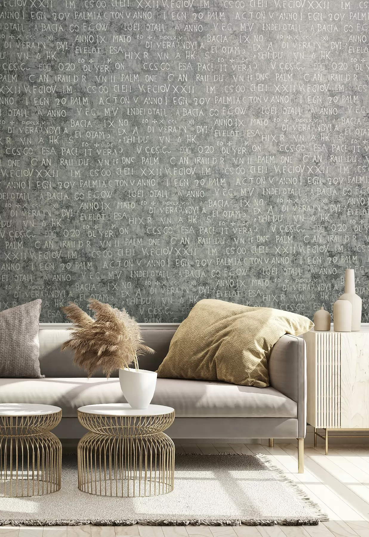 Sötétszürke színű grafika vagy feliratmintás vlies tapéta, Marburg Jackie 6824-40