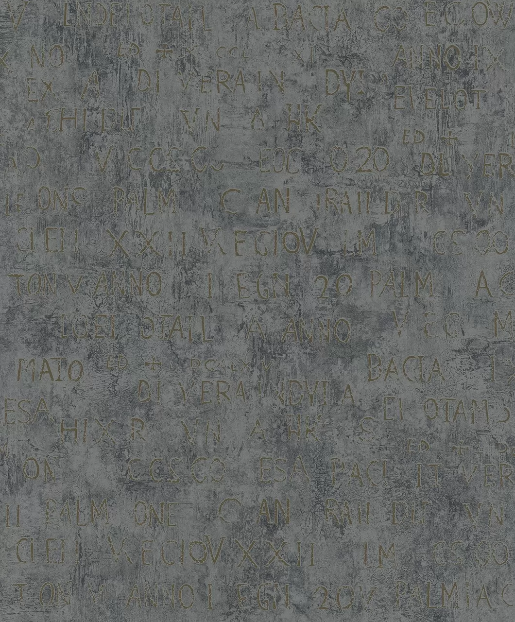 Sötétszürke színű grafika vagy felirat mintás vlies tapéta, Marburg Jackie 6824-50
