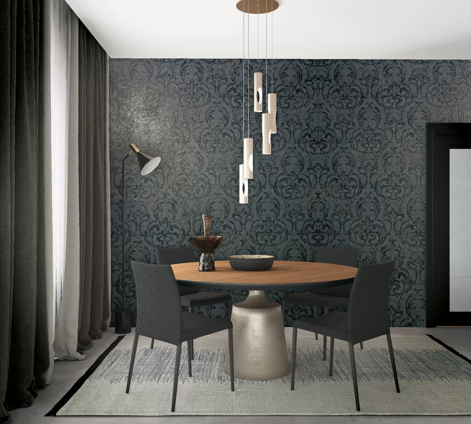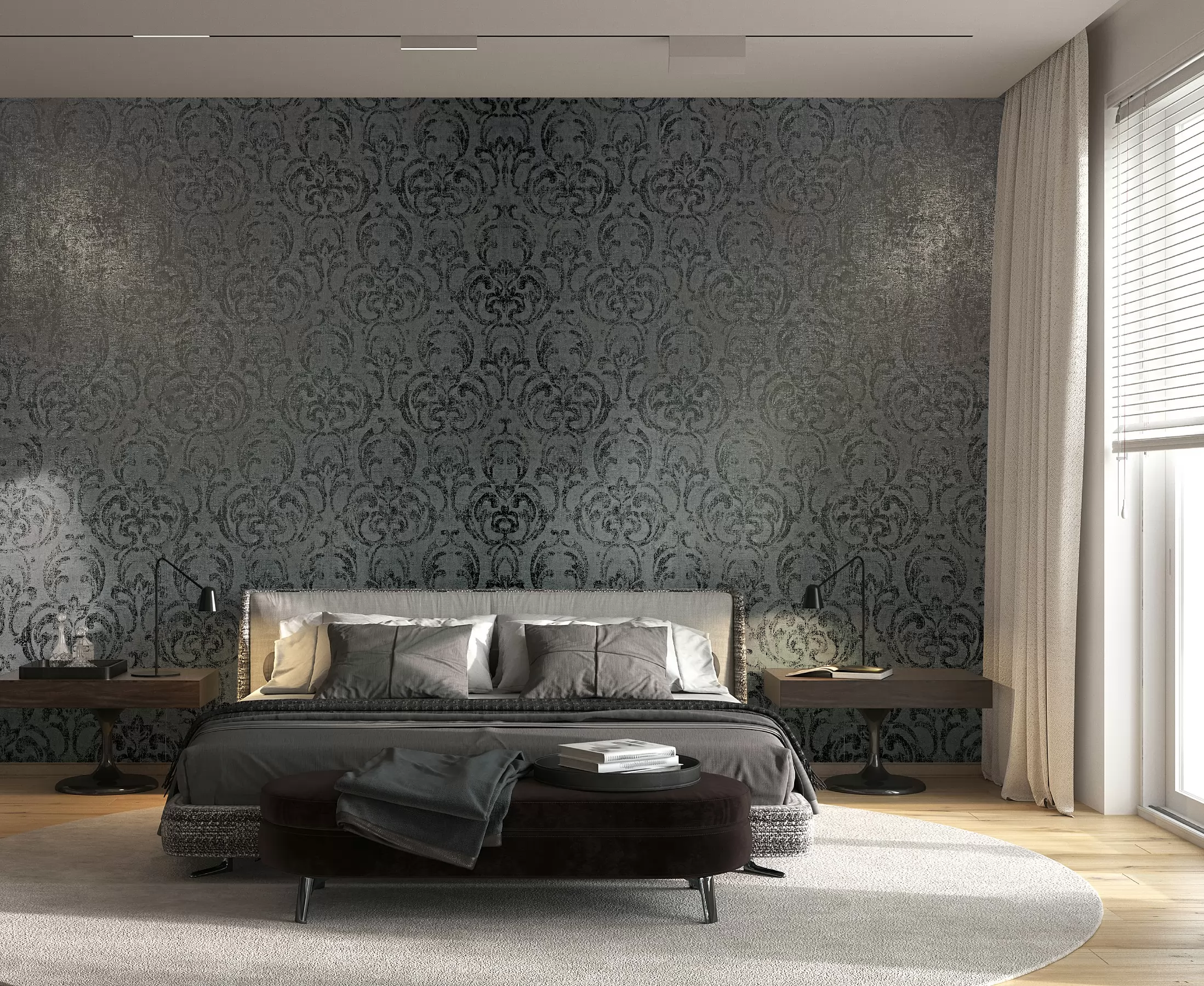 Sötétszürke alapon neobarokk mintás vlies tapéta, Marburg Jackie 6830-40