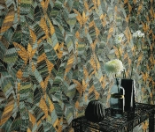 Zöld-arany színű levélmintás Vlies-vinyl tapéta, Erismann Elle Decoration 4, 10446-19
