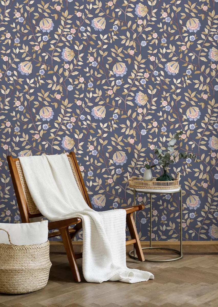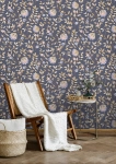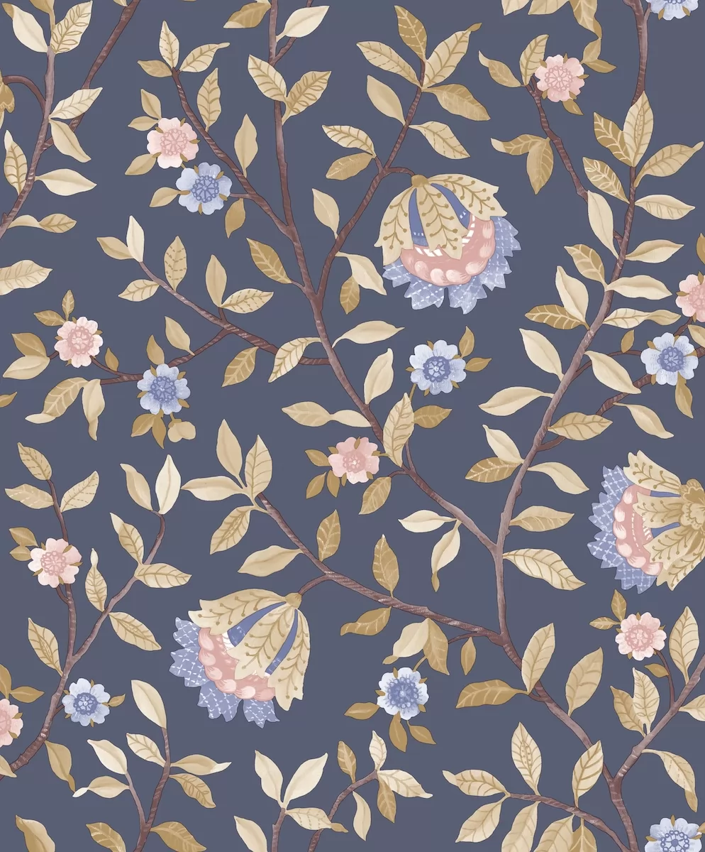 Sötétkék alapon virágmintás Vlies tapéta, Botanique B19911
