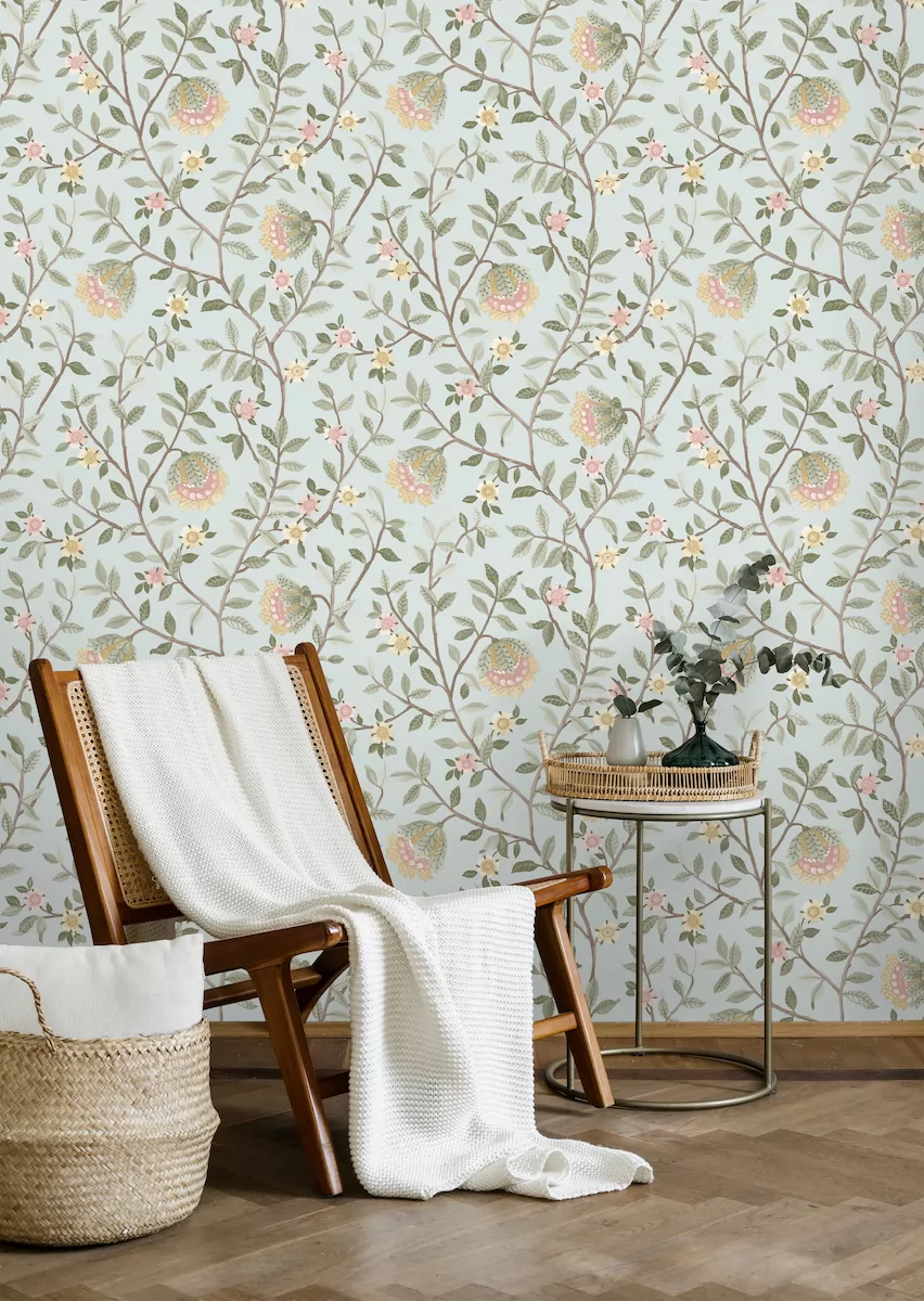Világoskék alapon virágmintás Vlies tapéta, Botanique B19924