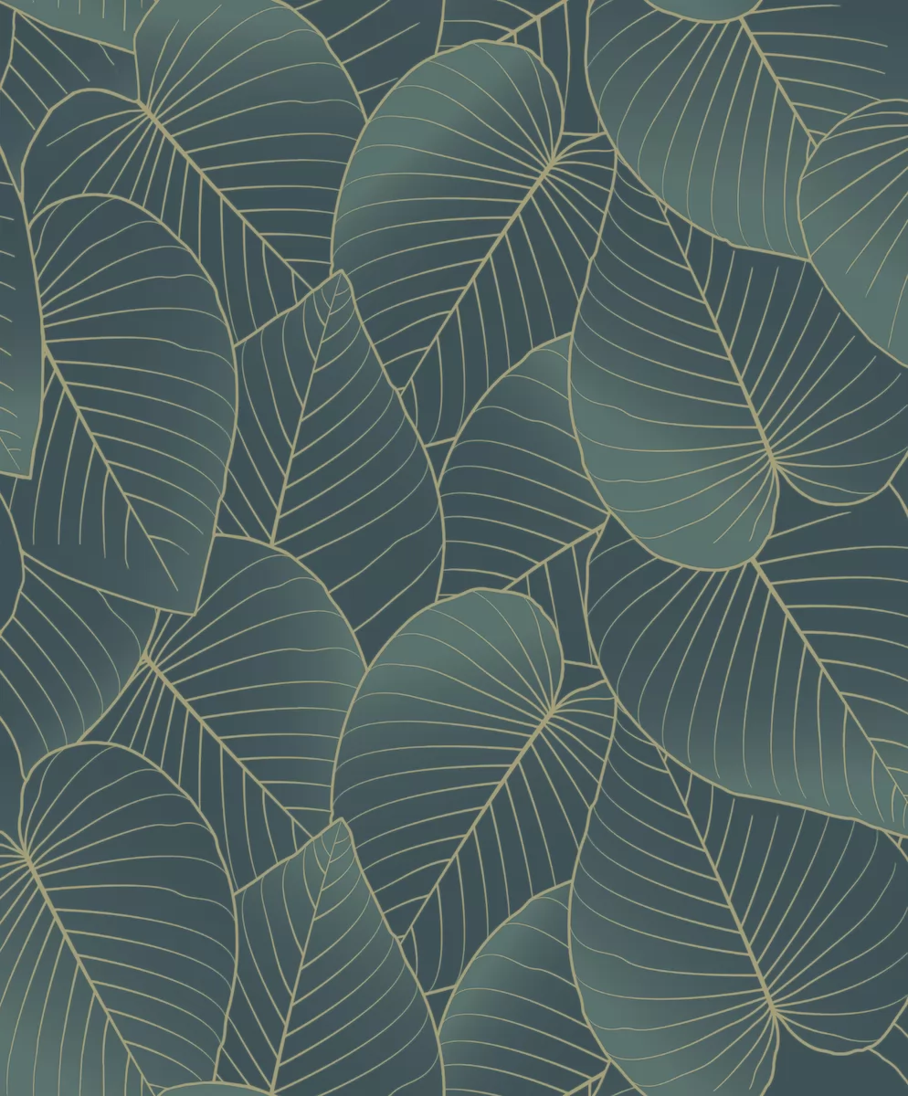 Sötétzöld levélmintás Vlies tapéta, Botanique B21204