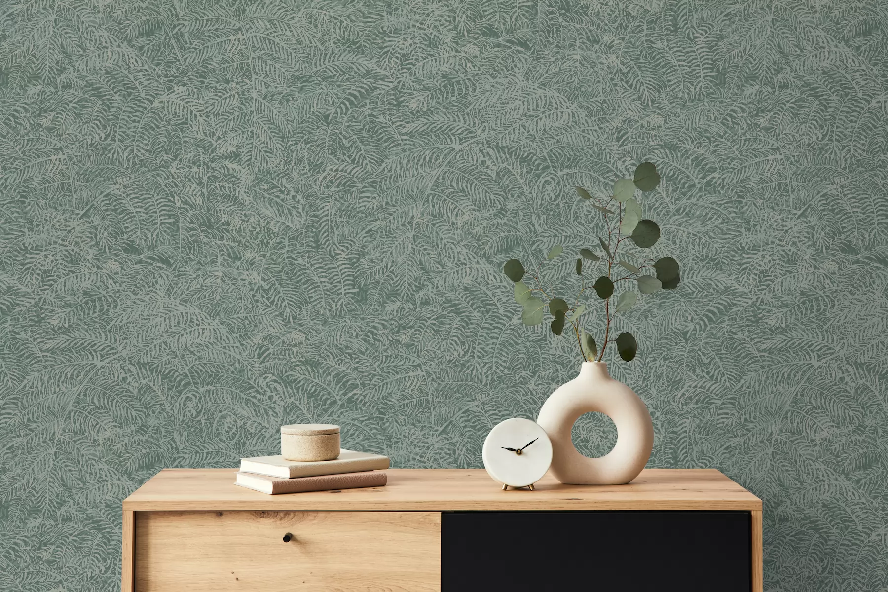 Zöld alapon arany levélmintás vlies tapéta, Botanique M49814