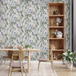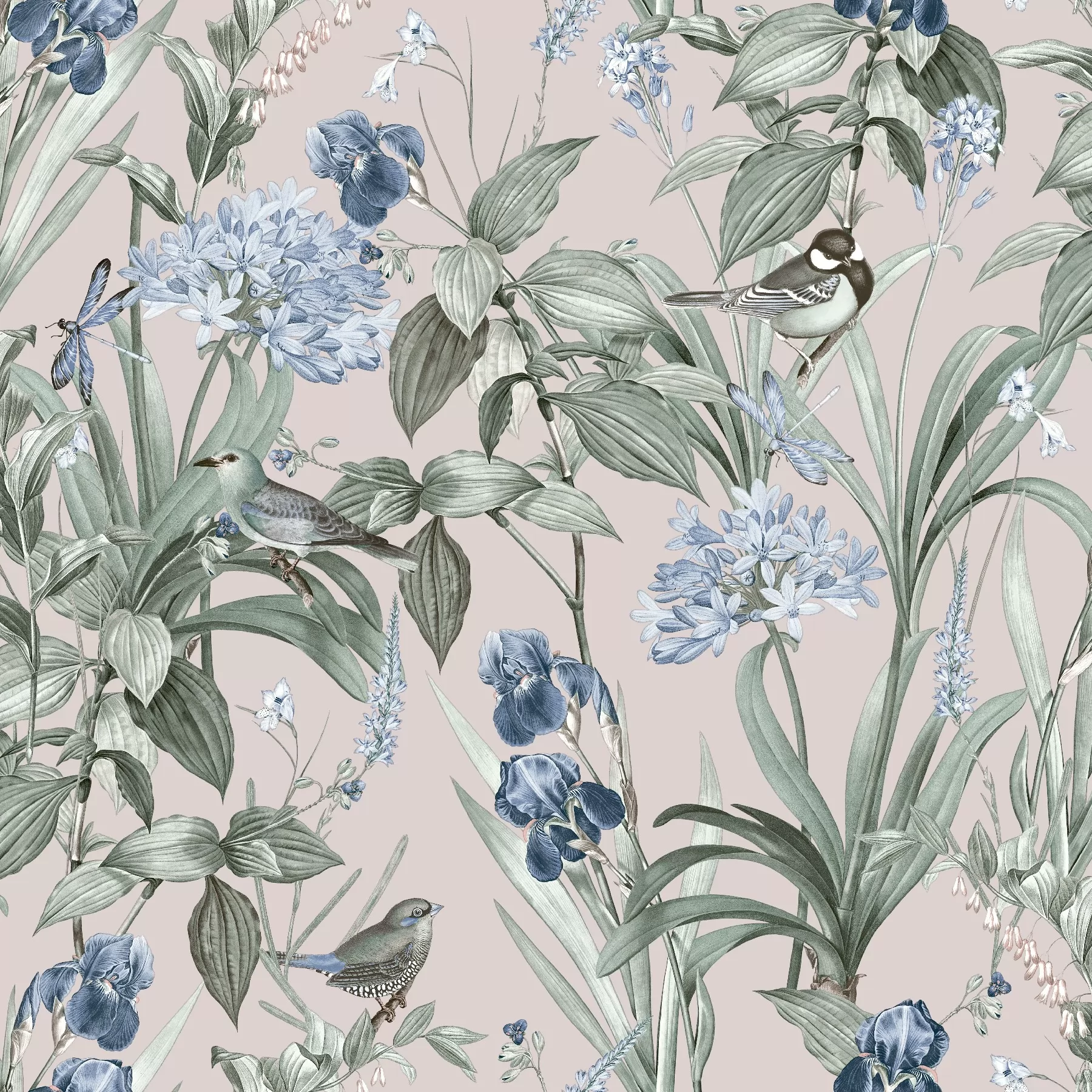 Rózsaszín alapon zöld és kék virágmintás Vlies tapéta, Botanique M64703