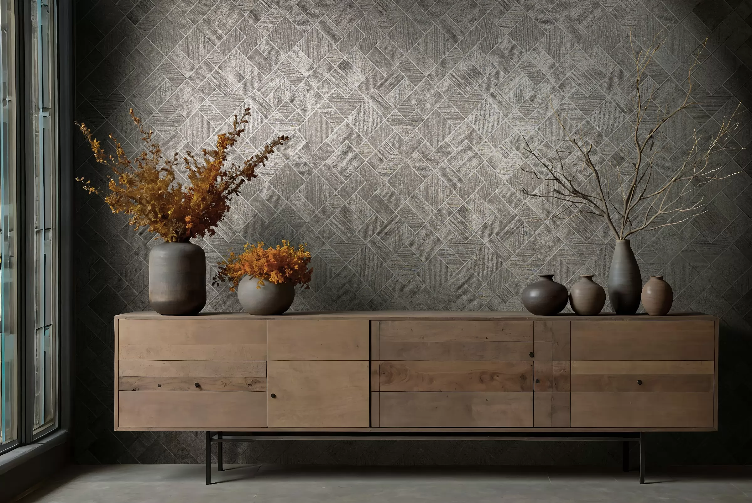 Szürkésbarna színű geomterikus mintás Vlies tapéta, Ritus 35511