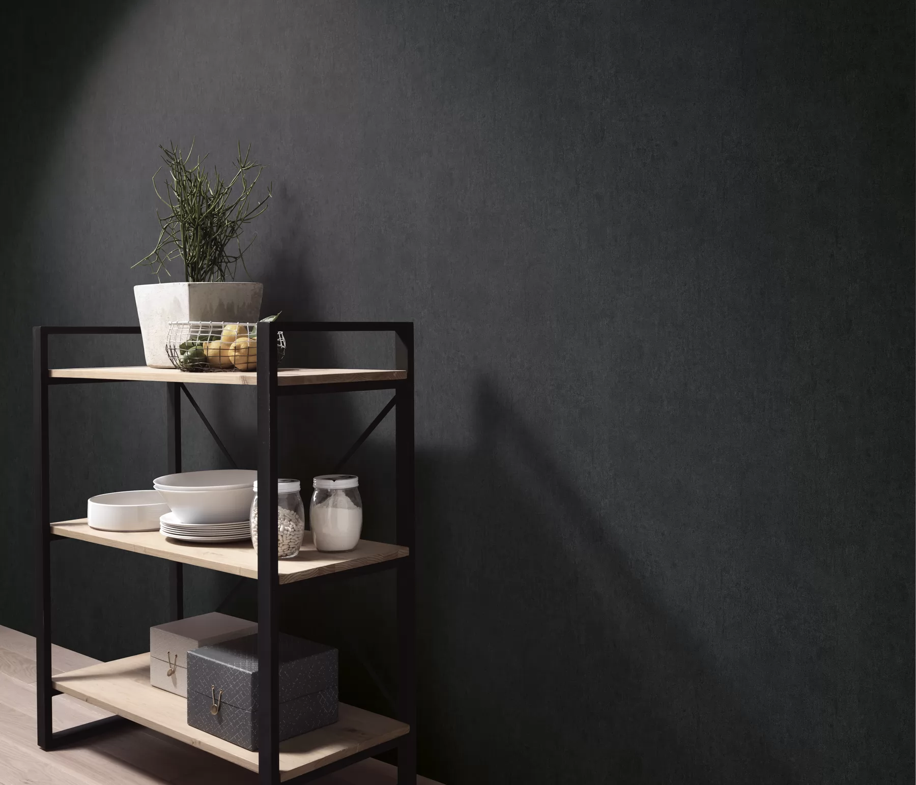 Fekete színű betonfal hatású Vlies tapéta, Play of Light 10418-15