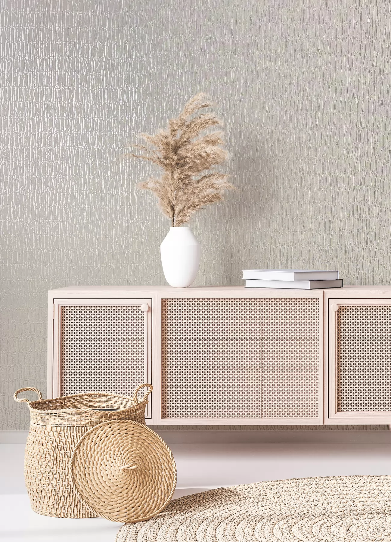 Bézs színű dombormintás Vlies tapéta, Kumano 1834502