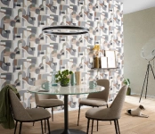 Tört fehér, szürke és barna alapon geometrikus Vlies tapéta, Gentle 10432-11