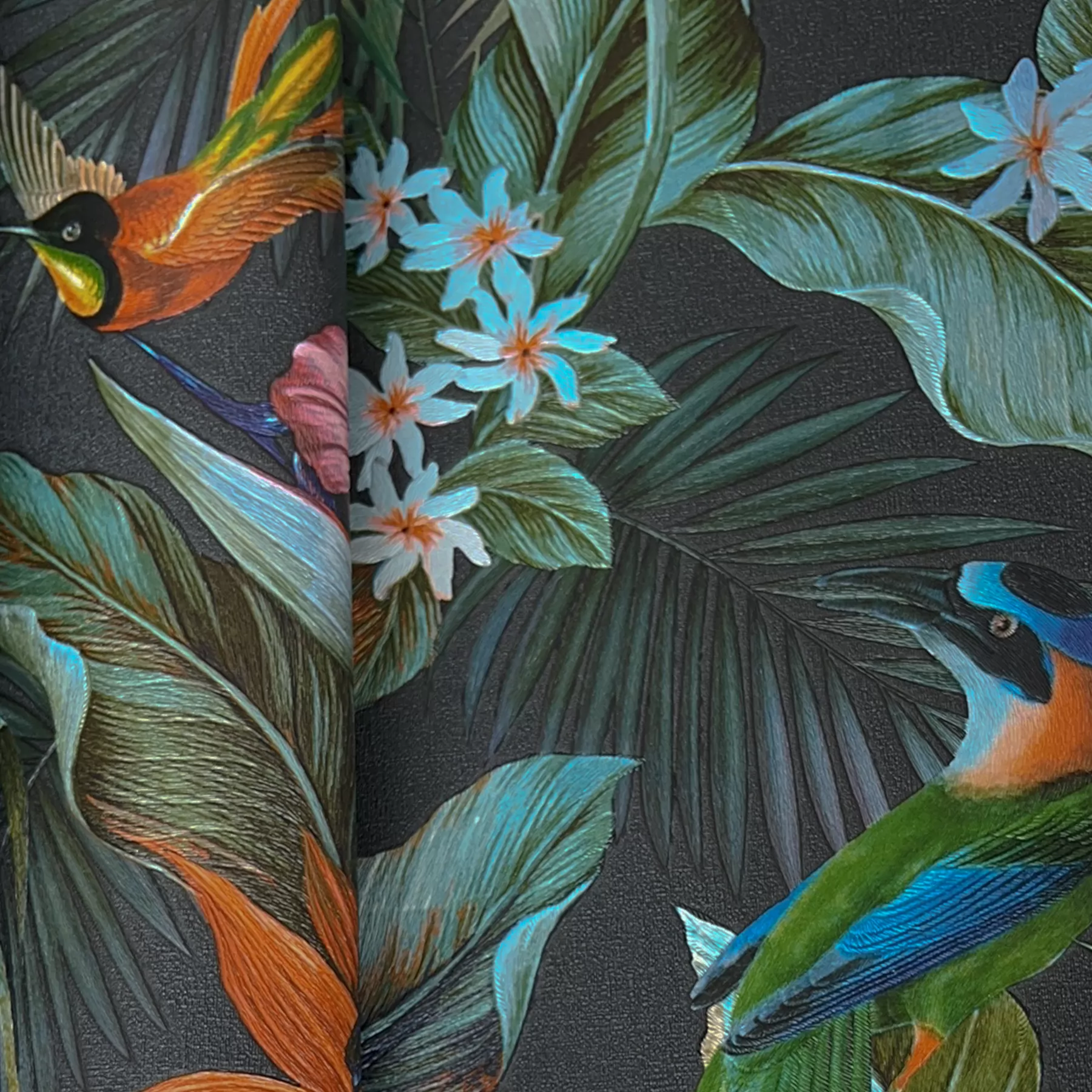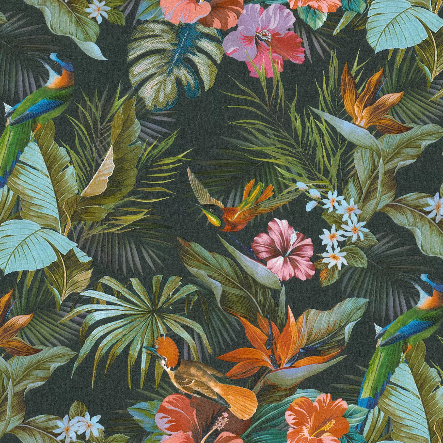 Fekete-zöld színű növényi mintás vlies-vinyl tapéta, Eldorado 15517