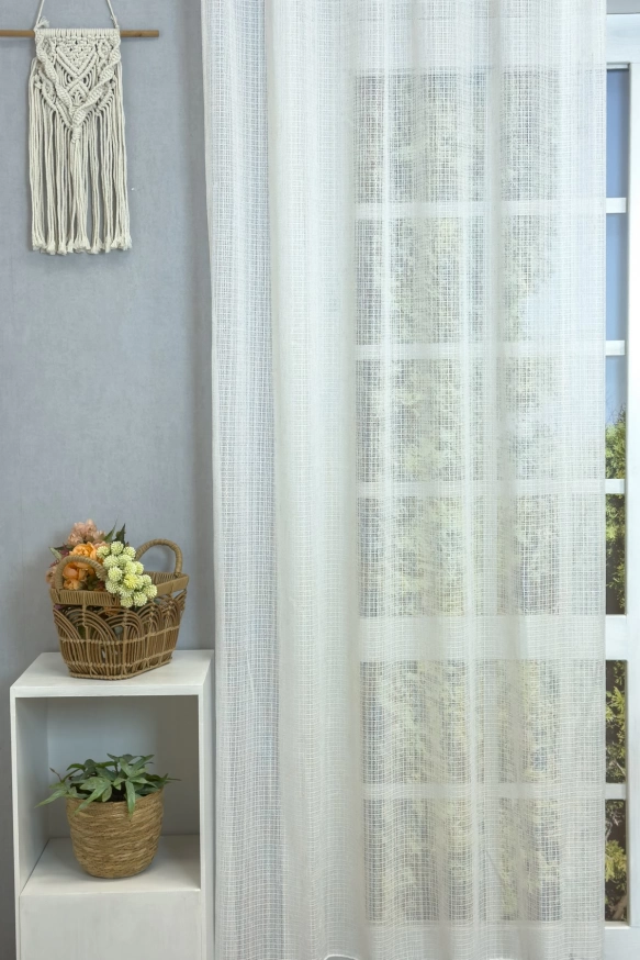 Espoo - Fehér-ecrü színű rusztikus vastagszálú struktúr függöny