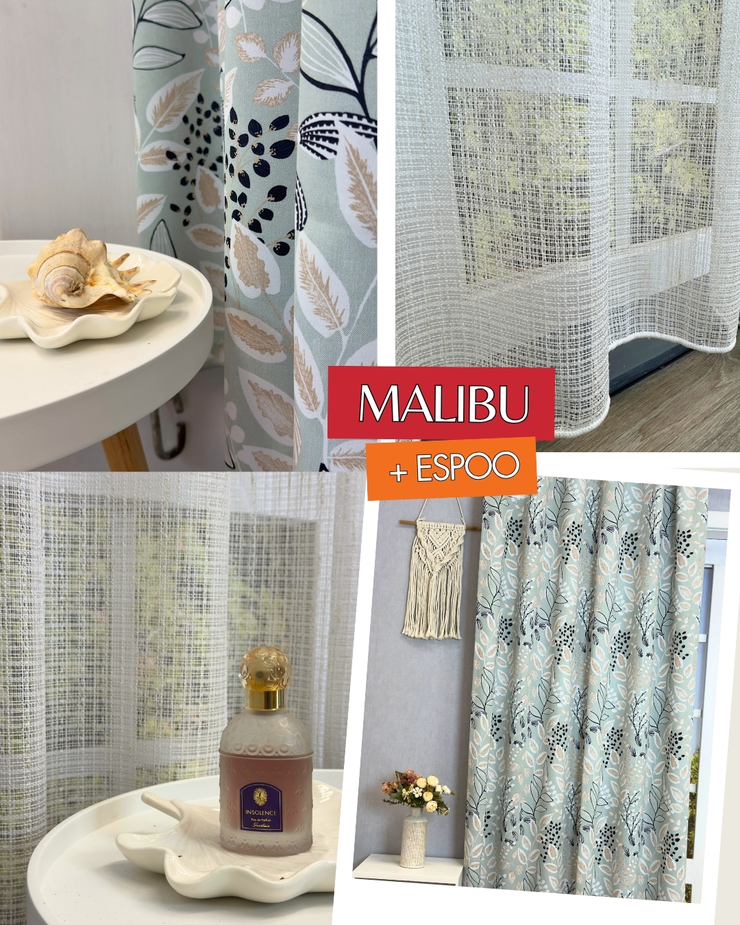 Malibu nyomott mintás dimout és az Espoo rusztikus fényátersztő segítségével igazi tengerparti hangulatot teremthetsz